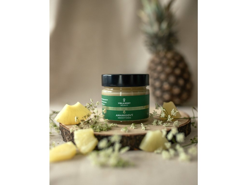 Ananásový medový krém je harmonické spojenie krémového pastového medu a lyofilizovaného ananásu, ktoré prináša osviežujúci exotický zážitok. Vďaka šetrnému spracovaniu si ananás uchováva svoju prirodzenú chuť, vôňu a výživové hodnoty – najmä vitamín C, enzýmy a antioxidanty.