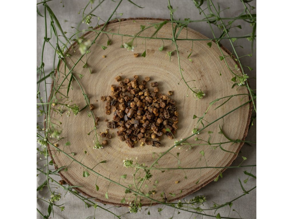 Perga (110 g) – fermentovaný včelí peľ s vysokým obsahom bielkovín, vitamínov, minerálov a enzýmov. Dodáva energiu, posilňuje organizmus a zlepšuje odolnosť voči chorobám.