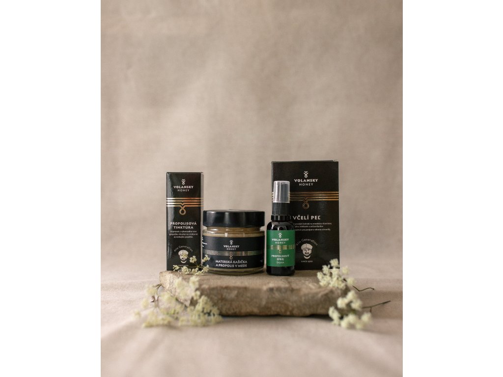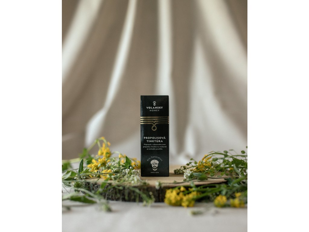Propolisová tinktúra (50 ml) – koncentrovaný alkoholový výluh propolisu s výrazným antivírusovým, antibakteriálnym a protizápalovým pôsobením.