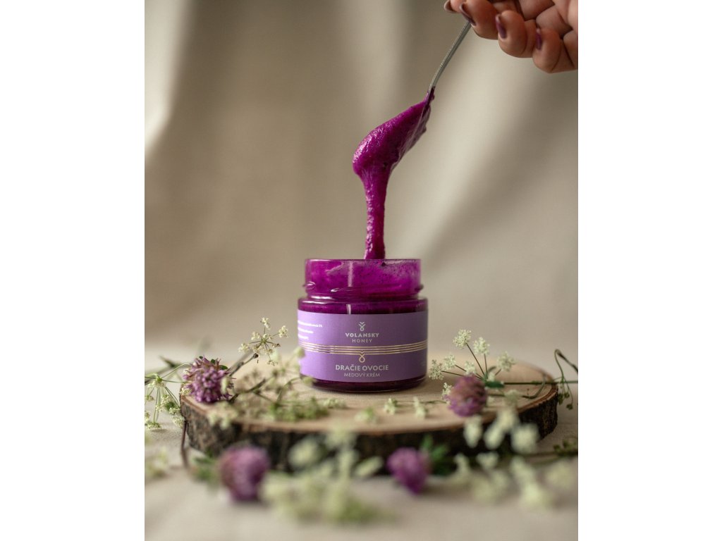 Objavte jedinečné spojenie kvalitného slovenského pastového medu a lyofilizovaného dračieho ovocia. Tento jemne našľahaný medový krém si zachováva prirodzenú chuť a výživové vlastnosti včelieho medu, zatiaľ čo dračie ovocie mu dodáva sviežu, exotickú chuť a zaujímavú farbu.