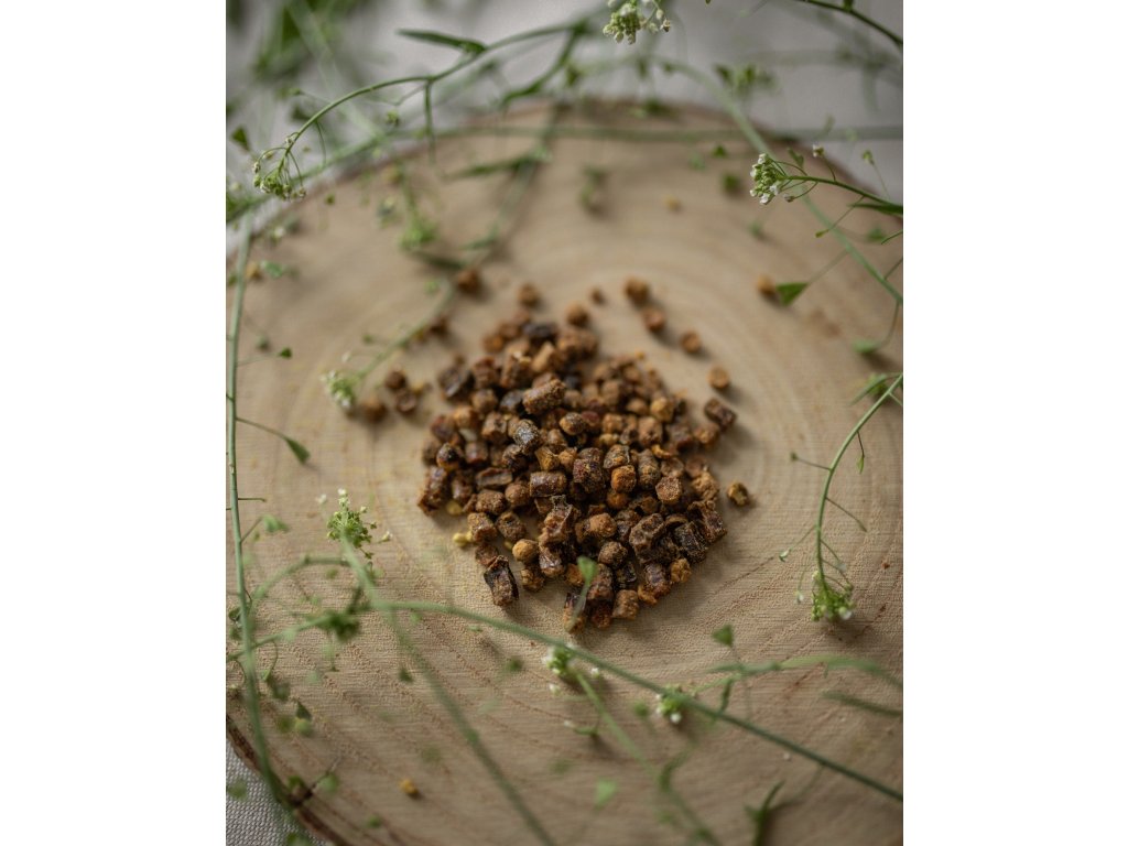 Perga, známa aj ako "včelí chlieb", je výnimočný prírodný produkt, ktorý ponúka množstvo zdravotných benefitov. Je výsledkom fermentácie peľu včelami, čo z neho robí mimoriadne výživný a biologicky dostupný zdroj živín. Tento prírodný doplnok stravy je bohatý na vitamíny, minerály a aminokyseliny, ktoré sú nevyhnutné pre podporu imunitného systému, zlepšenie trávenia a dodanie energie. Obsahuje antioxidanty, ktoré pomáhajú chrániť srdce a cievy pred oxidačným stresom a podporujú zdravú cirkuláciu krvi. Konzumácia pergy je jednoduchá a všestranná. Môžete ju pridať do svojho jedálnička rôznymi spôsobmi, či už ako súčasť raňajok, v smoothies alebo priamo na lyžičku. Odporúčané dávky pergy vám poskytnú potrebné živiny na každý deň. Športovci ocenia pergu pre jej schopnosť zvyšovať energiu a zlepšovať regeneráciu po fyzickej aktivite. Je ideálnym doplnkom pre tých, ktorí hľadajú prirodzený spôsob, ako zlepšiť svoj výkon a podporiť celkové zdravie. Perga má charakteristickú príjemnú vôňu, ktorá je jemne kvetinová s náznakmi medovej sladkosti. Jej farba sa pohybuje od tmavožltej po hnedú, čo závisí od druhu peľu, z ktorého bola vyrobená. Táto prirodzená farebná variabilita je znakom jej autentickosti a kvality. Perga je nielen výživným doplnkom, ale aj lahodnou pochúťkou, ktorá obohatí váš jedálniček o cenné látky a prinesie množstvo zdravotných benefitov.